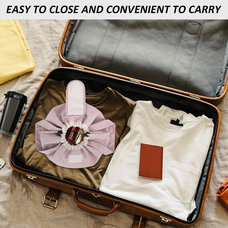 - Easy and easy to use - This cosmetic bag uses a drawstring design on the outside. When you use it, you just need to gently pull the drawstrings on both sides to open the cosmetic bag. After use, pull the drawstrings on both sides again to close them easily.