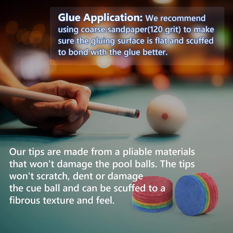 • 【Easy to install】Our pool cue tip is easy to install,making it a convenient option for both beginners and experienced players alike.No need for complicated tools or techniques!