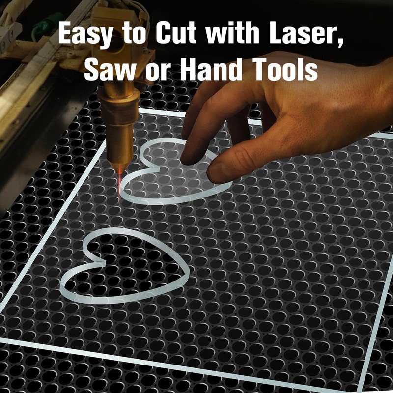 - EASY TO CUT & SHAPE: Our cast acrylic sheets are more flexible than glass, which makes it easy to cut or drill each sheet to size with any type of miter saw, table saw, jigsaw,router, drill or knife etc. In addition, this Plexiglass Sheets does not have a melting point so you can avoid scorch marks made by laser cutting acrylic or engraving. Catering to your desired dimensions and shapes.