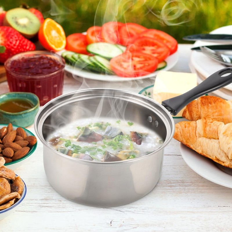 • ✅ Stainless steel milk pot handheld soup pot stovetop milk pot cooking pot kitchen milk heating pot; The materials of our Soup Pot is durable and safer than others, so you could keep it for a long time.