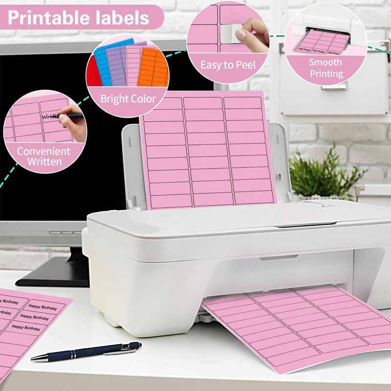 1" x 2-5/8" Colored Address Labels, 600 Bright Pink Label Stickers- Laser/Ink Jet Printer Mailing Labels, 8.5"x11" 20 per Sheet