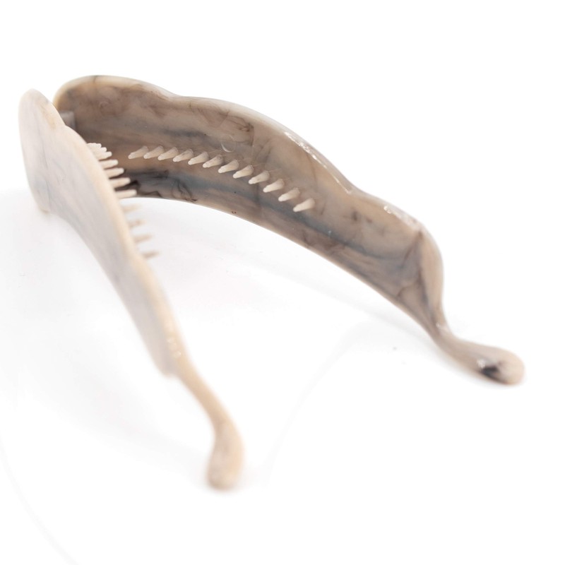Banana clip small in dove grey (colour no. P6020) grey approx. 10 cm long and 2.5 cm wide.