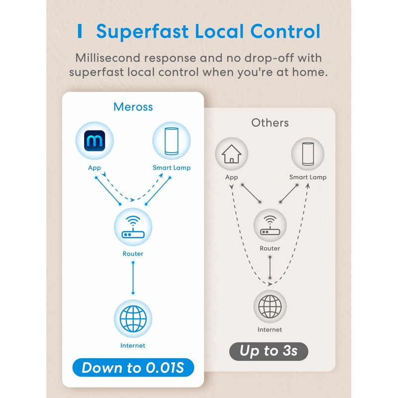 - Offline control: Even if the router is disconnected from the Internet, you can still control the smart device via the meross app as long as the smart device and phone are still connected to the same WiFi. (Product patent no. : 008493753-0001)