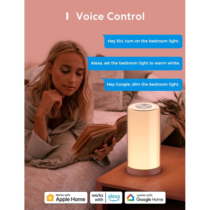 - Voice control: WiFi night lamp works with Apple HomeKit, Alexa and Google Assistant. Voice commands control the intelligent table lamp, freeing hands and making life easier.