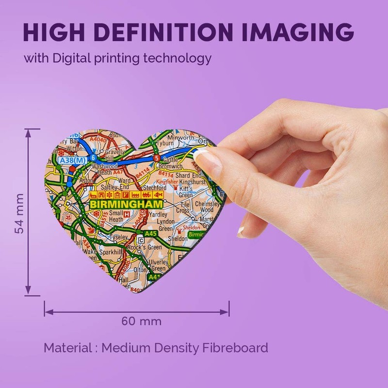 1 x Heart MDF Magnets - Birmingham England Travel City UK Map 44284