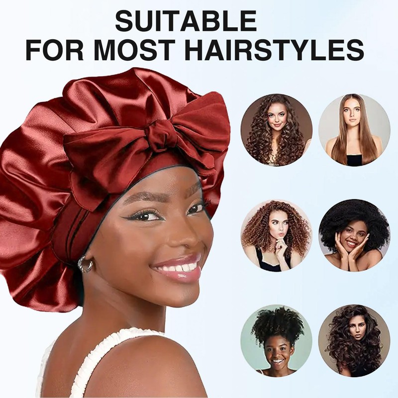 - ★ Premium Satin & Hair Care: Sleep cap made of silky satin, with smooth surface, excellent fabric is particularly skin-friendly, soft and comfortable. It can protect the hair to the maximum, prevents the hair from tangling. It can also seal the moisture of the hair and increase its shine. Let yourself wake up in the morning every day with soft and beautiful hair.