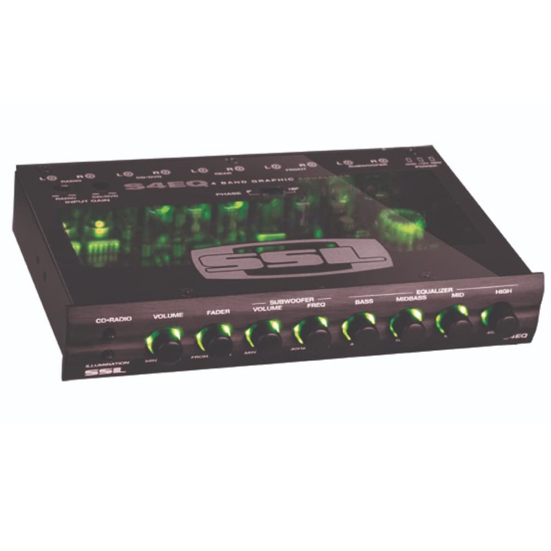 1 x SOUNDSTORM SSL S4EQ Preamp Equalizer 4 Band Crossover Ultra Slim Two Tone Lighting Red or Green
