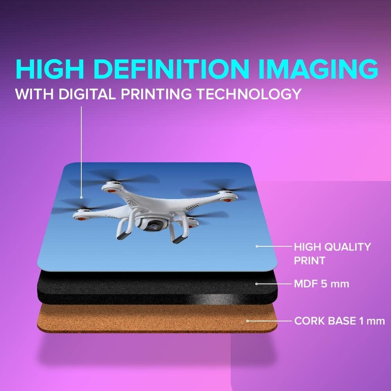 1 x Square Jumbo Size Coaster 12cm Drone Quadrocopter Flying Camera Cork Backed MDF Glossy Tea Coffee Accessory #50785
