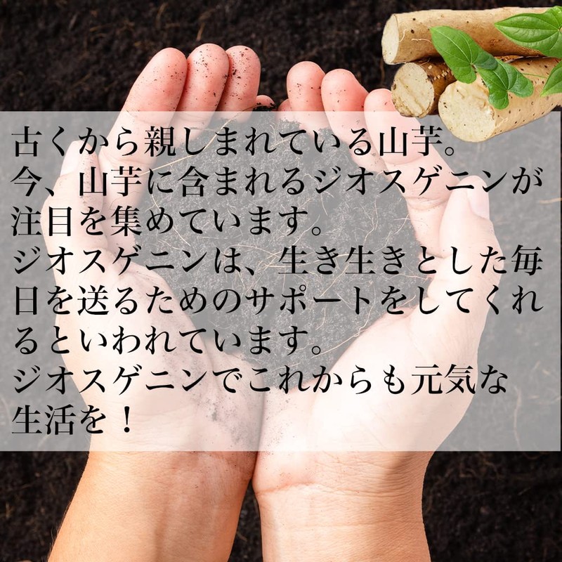 - 近年、山芋に含まれるジオスゲニンが注目を集めています。本商品では、特にジオスゲニンの含有量が多い懐山芋を使用しています。