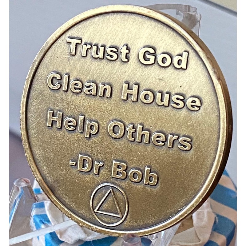 - 1 Year AA Medallion With Trust God Clean House Help Others - Dr Bob on Back.