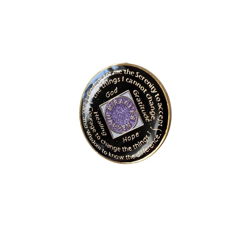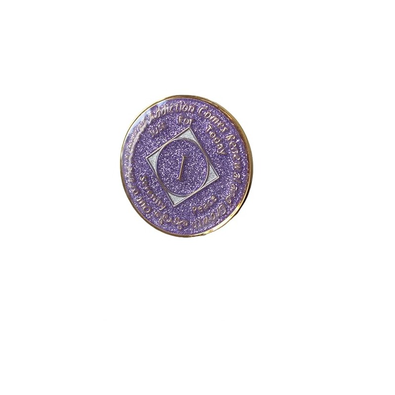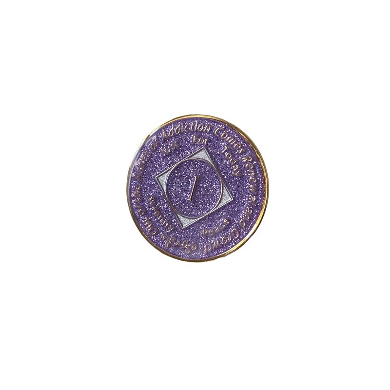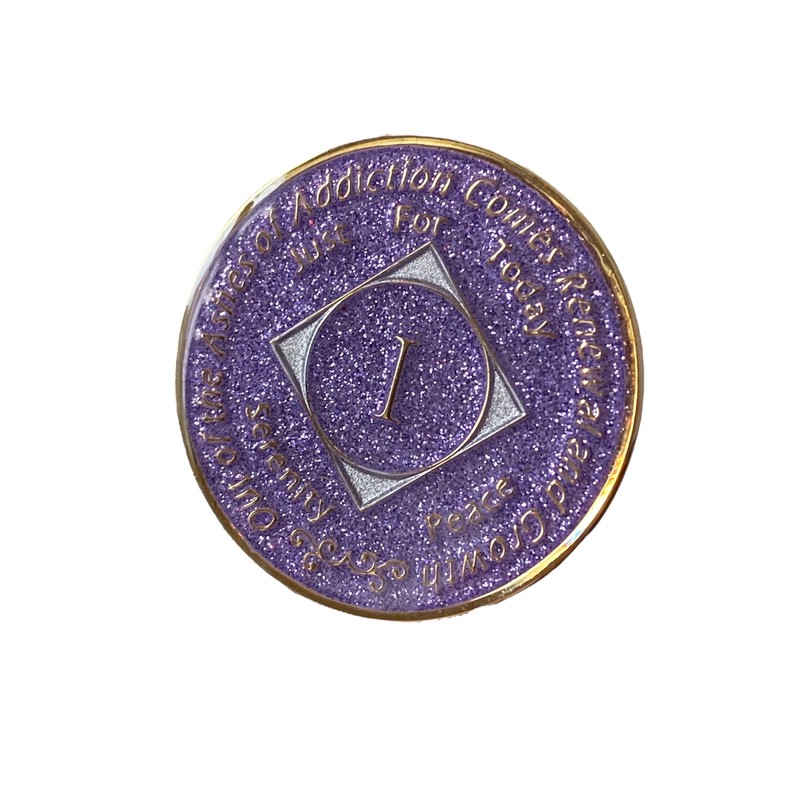 1 Year NA Clean Time Chip Glossy Purple Lavender Glitter Gold Tri-Plate Medallion