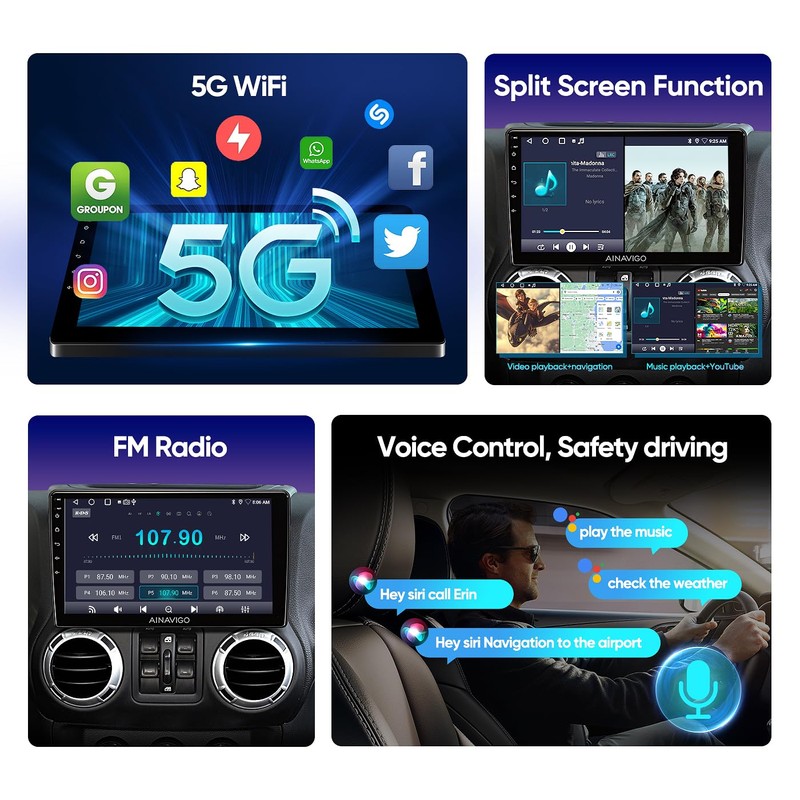 - 【Wired/Wireless CarPlay & Android Auto】:This jeep jk radio is equipped with the latest technology of wired/wireles CarPlay and Android Auto, allowing you to seamlessly integrate your smartphone apps into your car's infotainment system.You can easily wake up Siri or Assistant to operate apps and perform various tasks, such as making calls, sending messages, finding directions, and controlling music playback. Enjoy a hands-free and safer driving experience.