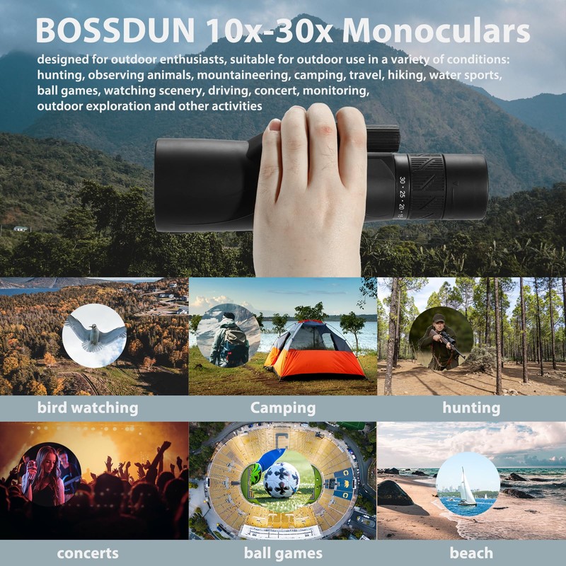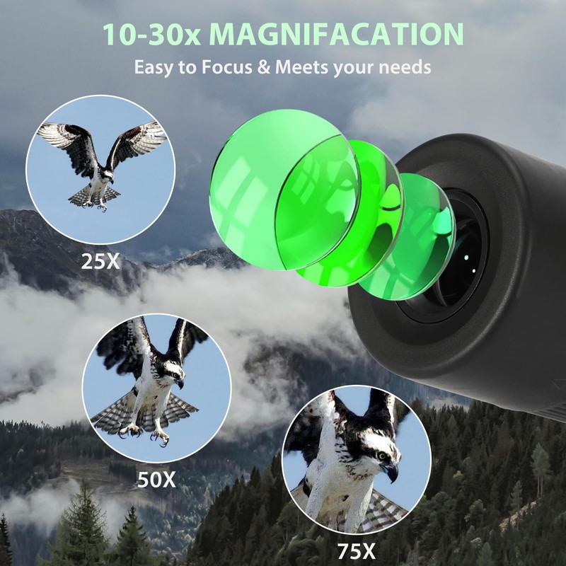 - HD Monocular with 10x 30x Zoom Magnification - Powerful zoom magnification from 10x to 30x allows you to target and zoom in for more detail. 50 mm large objective lens provides comfortable viewing. The large field of view brings nature closer to you.