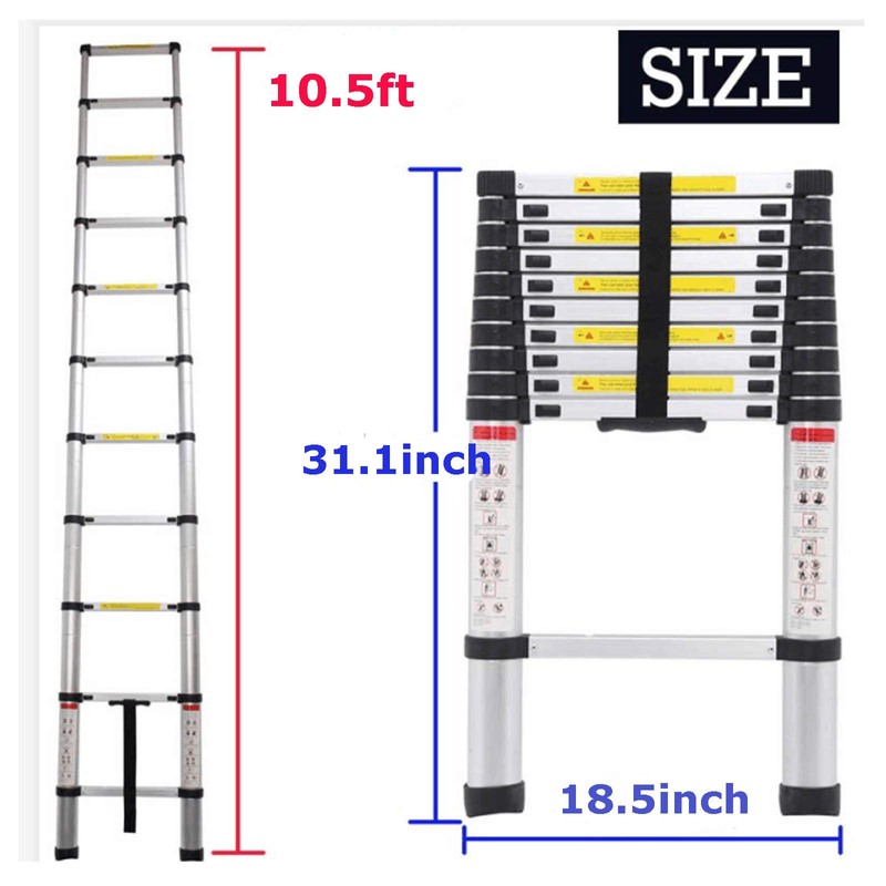 10.5 Feet Aluminum Telescoping Telescopic Extension Ladder 330 Pound Capacity, Portable Lightweight Attic Loft Ladder Foldable with Non-Slip Rubber Feet, EN131 Certificate Multi-Purpose Ladders