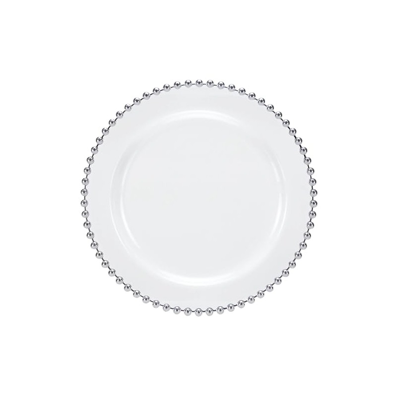 - Classic Round Design with Decorative Silver Beading – The clear round plate is accented with a detailed silver beaded trim, offering a sophisticated and refined look that enhances any formal table setting.