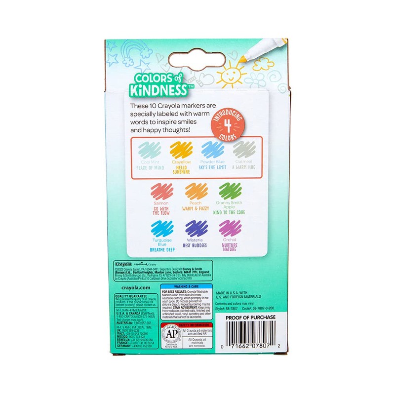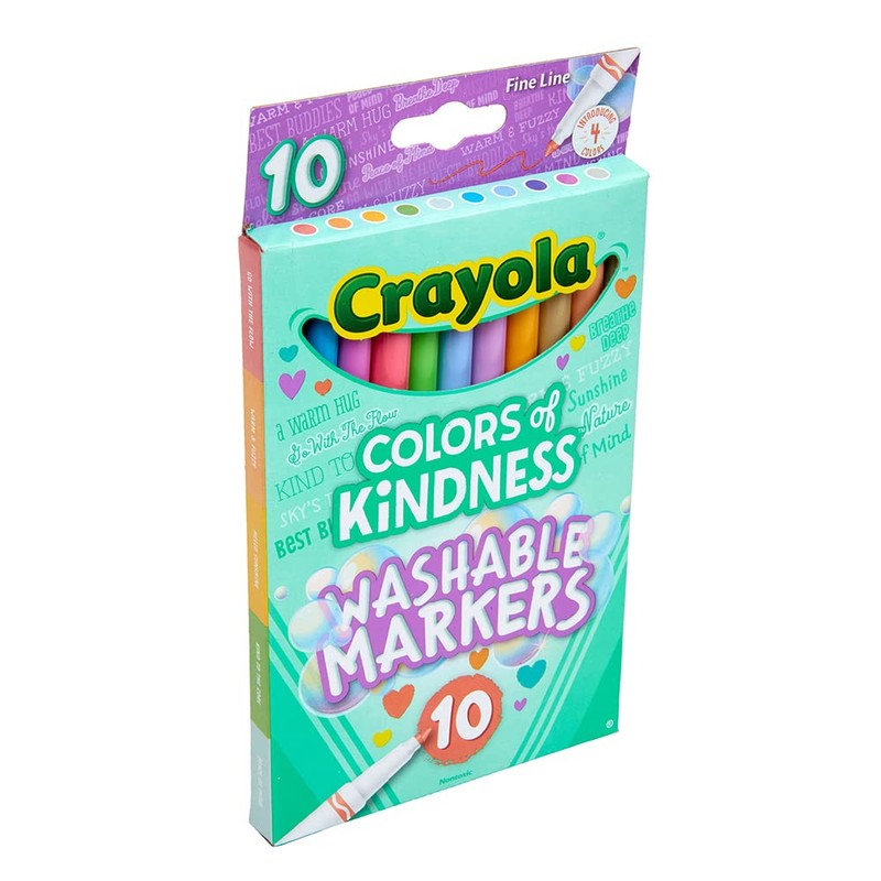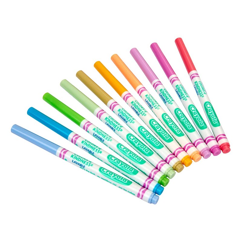 - 世界20ヶ国以上で愛され100年以上の歴史を持つクレヨンメーカー「クレヨラ (Crayola)」の、カラーオブカインドネスウォッシャブルマーカー (Colors of Kindness Washable Markers) は、マーカーペン1本1本にひとことメッセージが刻まれたマーカー10本セットです。