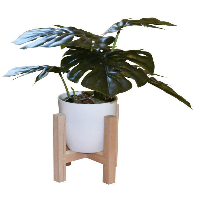 10" Artificial Monstera Plant with Wood Stand