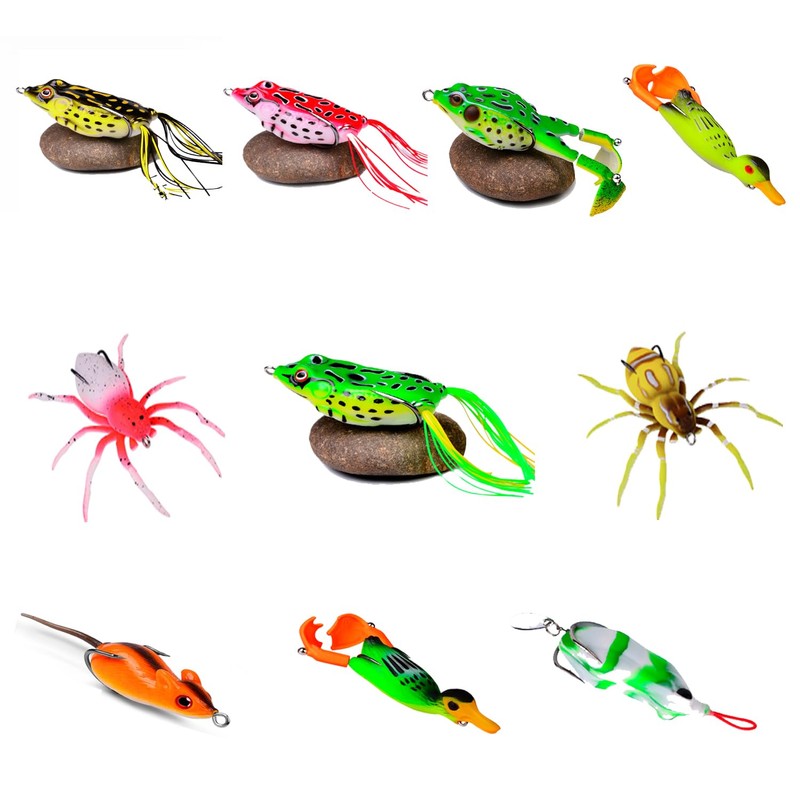 カエルルアー ネズミルアー トラウトフィッシングルアーキット トップウォーター 淡水 海水 リアルなフロッグ バス用ソフトベイト (10個入り各種ルアー)