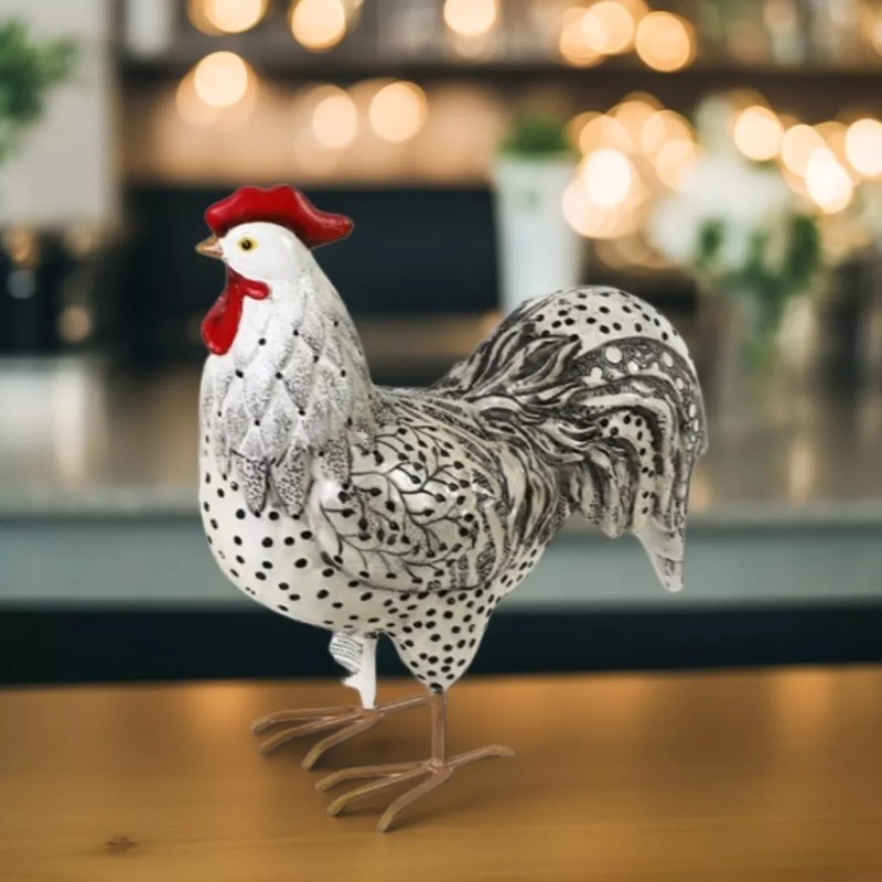 10"H Silver Campine Rooster Figurine