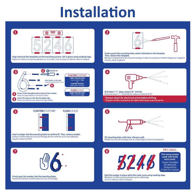- FLOATING MOUNT: Number is elevated 1/2'' from the wall for a beautifull floating effect.