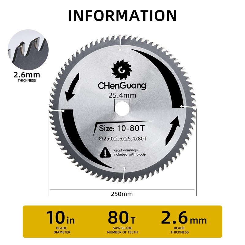 - Specifications: Diameter: 10” Circular Saw Blade;Hardened Alloy Teeth: 80T