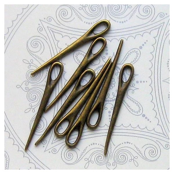 Needle antique bronze tone charms, in a zinc alloy metal.