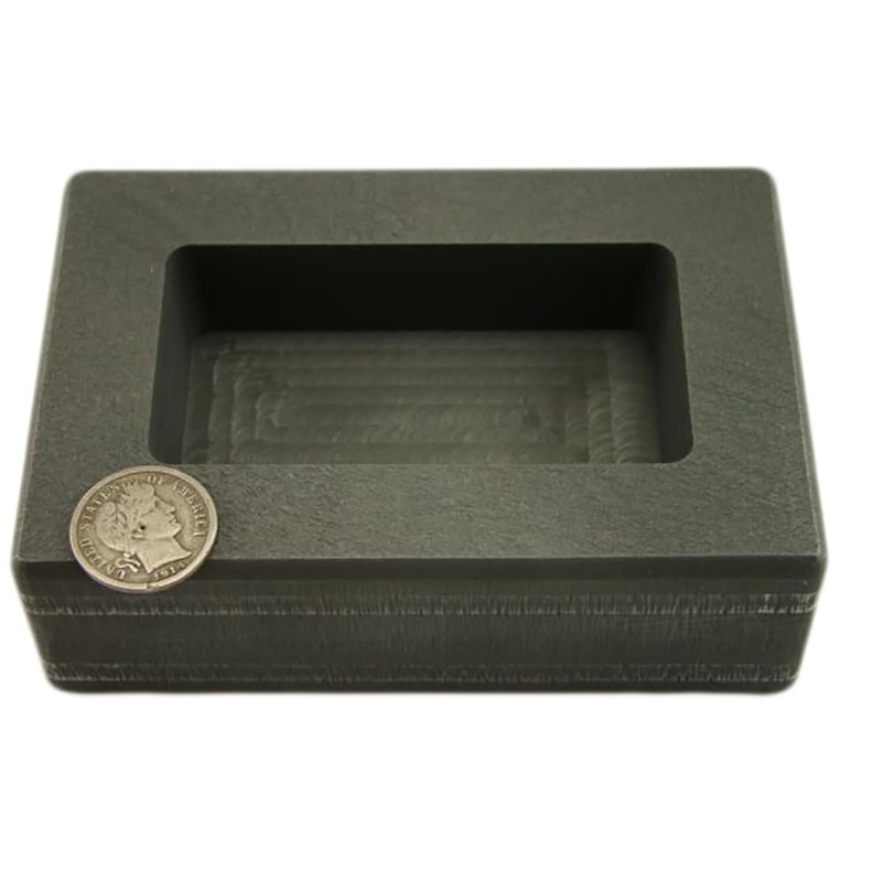 Machined High Density Graphite ingot mold with the slight wall taper for better metal removal. This Mold is great for making old style loaf bars. The weight of each bar depends on what metal your working with and how full you fill each cavity. Full to the top will give you a apx 10 Troy ounce Silver Bar. Silver Dime shown in the pic is not included.