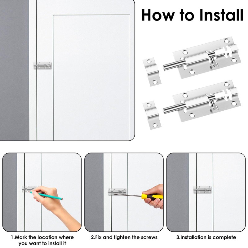 • Complete Set: Our barrel bolt latch package comes with 10 sturdy door latches and 60 screws. Each latch requires six screws for a secure and reliable installation
