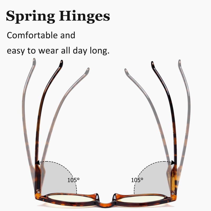 - Flexible spring hinge is comfortable for the ears, our blue light blocker readers eyeglasses are easy to wear all day.