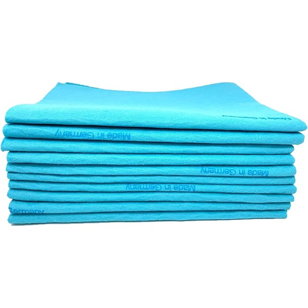 10 Pack Extra Large Original German Shammy Cloths Chamois Towels Super Absorbent for Pets, Parenting Tool Cleaning for Home and Commercial Use Wholesale Bulk (Blue)