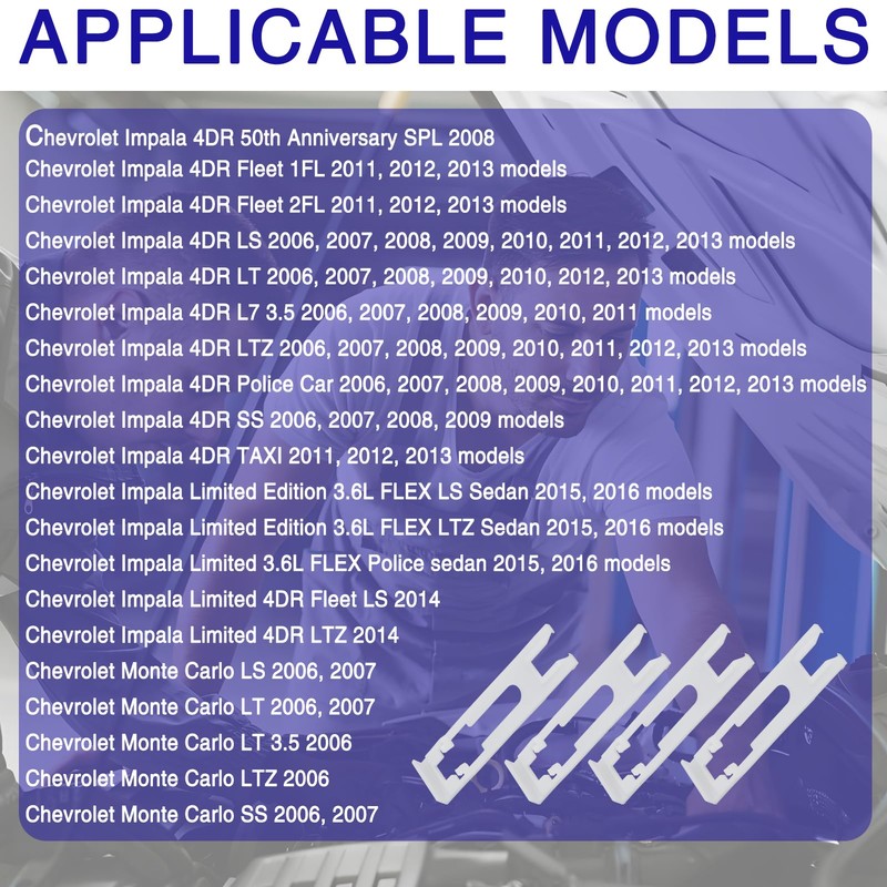 - Universal Compatibility: These 10 ABS plastic clips Compatible with Blazer (1998–2005), S10 Pickup (1998–2004), Impala (2000–2005), Carlo (2000–2005), Jimmy (1998–2001), Sonoma (1998–2004), Century/Regal (1997–2005), Oldsmobile Bravada (1998–2001), Intrigue (1998–2002)