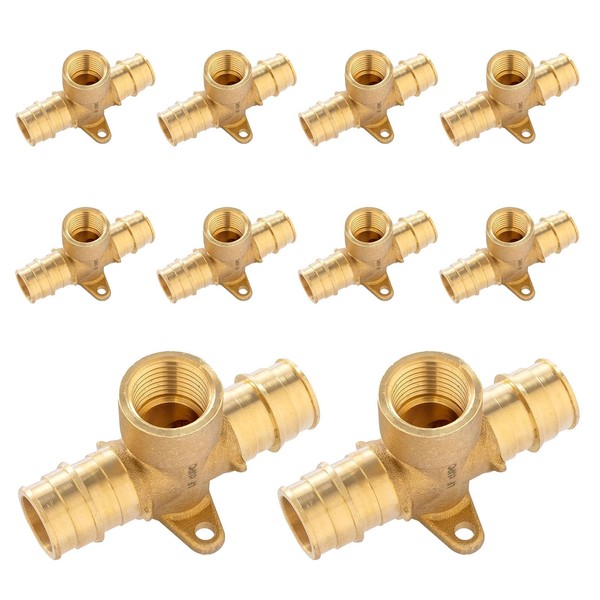 (10-Pack) Seelink PEX-A Expansion Fittings, 3/4"pex-a x 3/4"pex-a x 1/2" Female NPT Drop Ear Tee, Brass Expansion Pipe Fittings, for PEX Tubing Pipe Hose Fittings, ASTM F1960