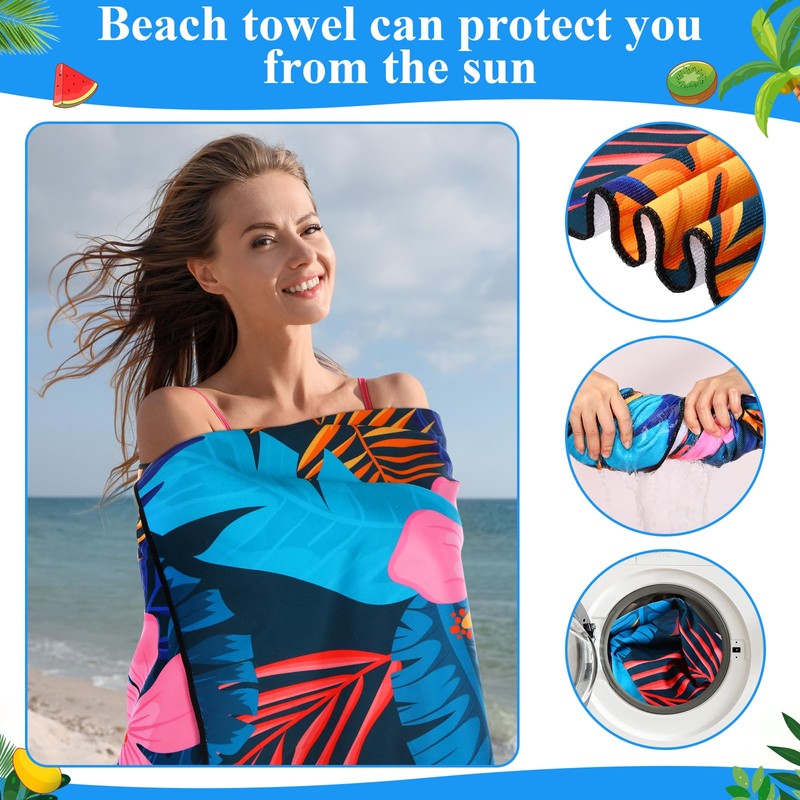 - Stylish Hawaiian-themed Designs: this lightweight beach towel for travel set features 10 different, vibrant styles and colors inspired by tropical summer vibes; Patterns include Flowers, palms, flamingos, parrots, pineapples, etc.adding a lively and colorful touch to any beach or fruit-themed party