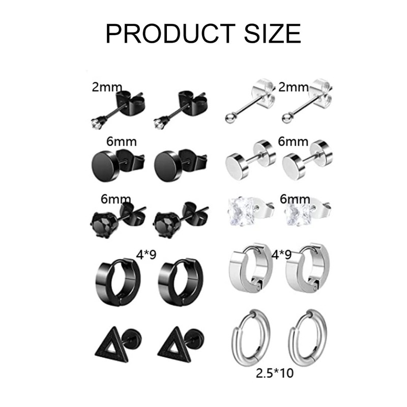 - Wide application: black and silver stainless steel stud earrings in simple, pure, fashionable and solid colors, can be used as stud earrings, cartilage earrings, spiral earrings, ear lobe earrings or other body piercings, cool and fashionable, suitable for party and daily life, make your life full of confidence, fashion and beauty.