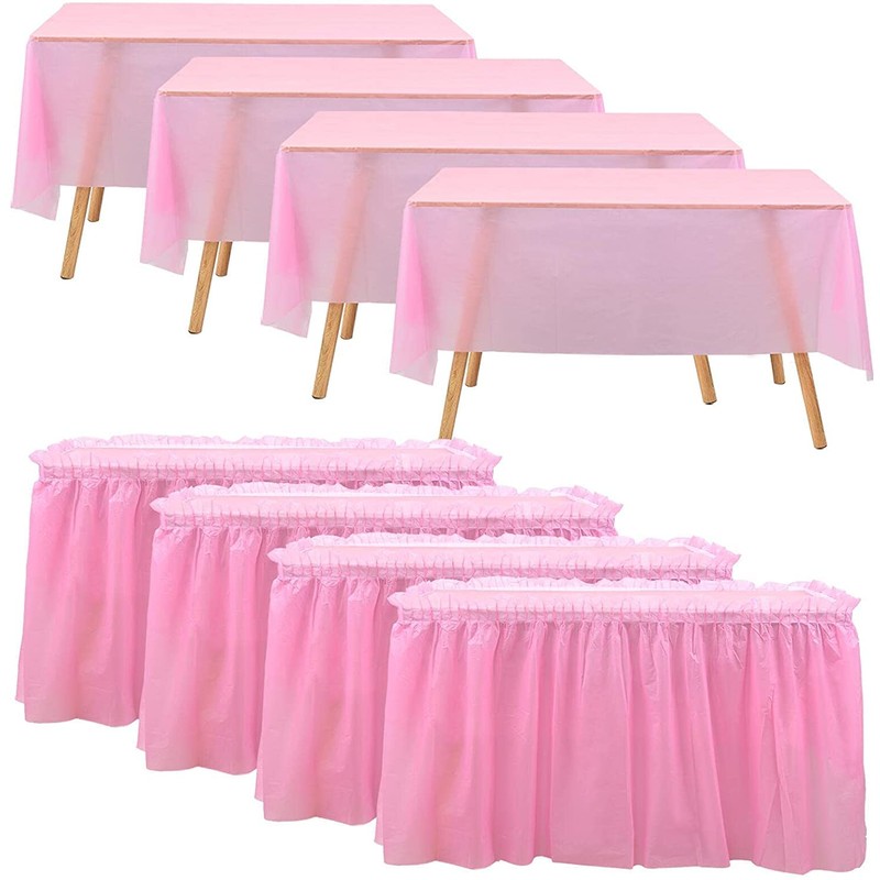 - 【5 Pack Tablecloths and Table Skirts Set】: Package included 5 Pack Table Skirts + 5 Pack Table Cloths. Tablecloth is 54 x 108 inches, table skirt is 14 Ft long and hang down 29 inches, cover up to 8 feet long rectangular table.