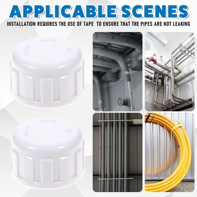 • Easy to Install: This 1/2 PVC cap does not require any specialist knowledge, simply wrap 5-8 turns of sealing tape or rubber sealing ring around the external threads of the cap and then tighten the cap.