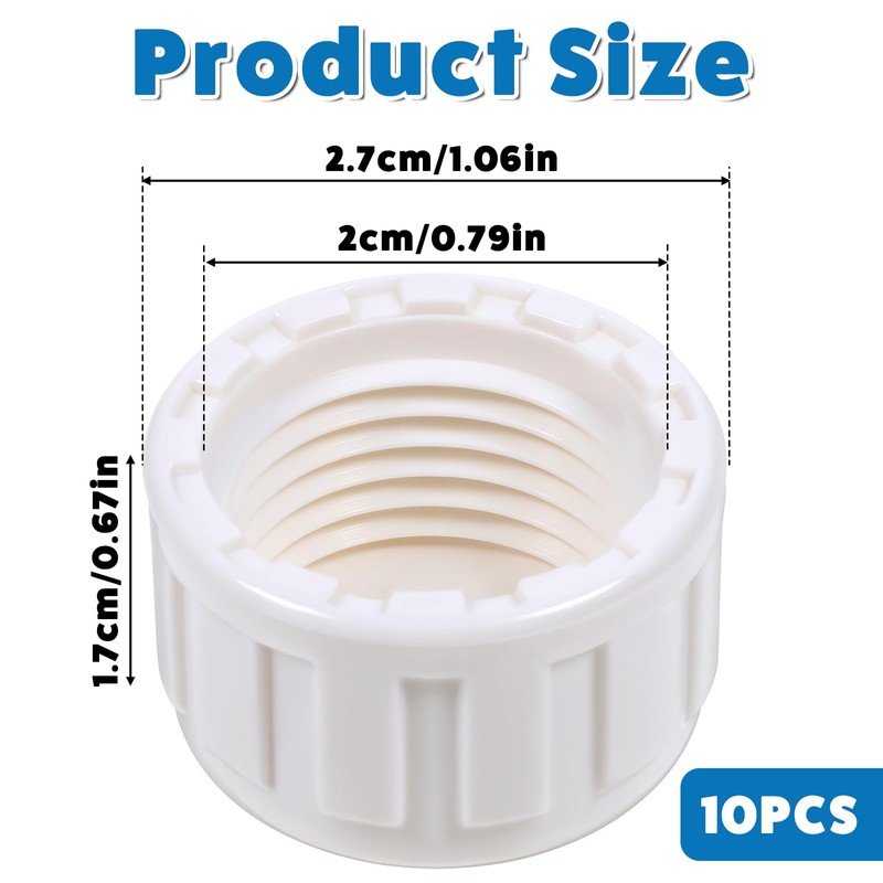 10 PCS 1/2 Inch PVC Cap, End Female Thread Cap, Sprinkler Garden Hose Caps, S...