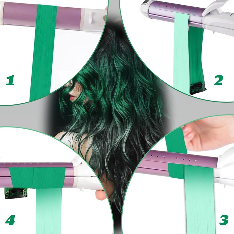 10 Pcs Hair Extensions | 22 In Hairpieces | Clip In Hair Extension | Hair Accessories for Girls (Green-light green gradient)
