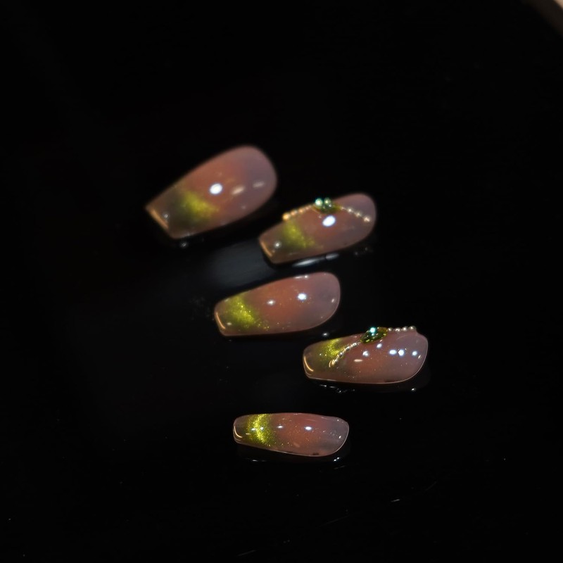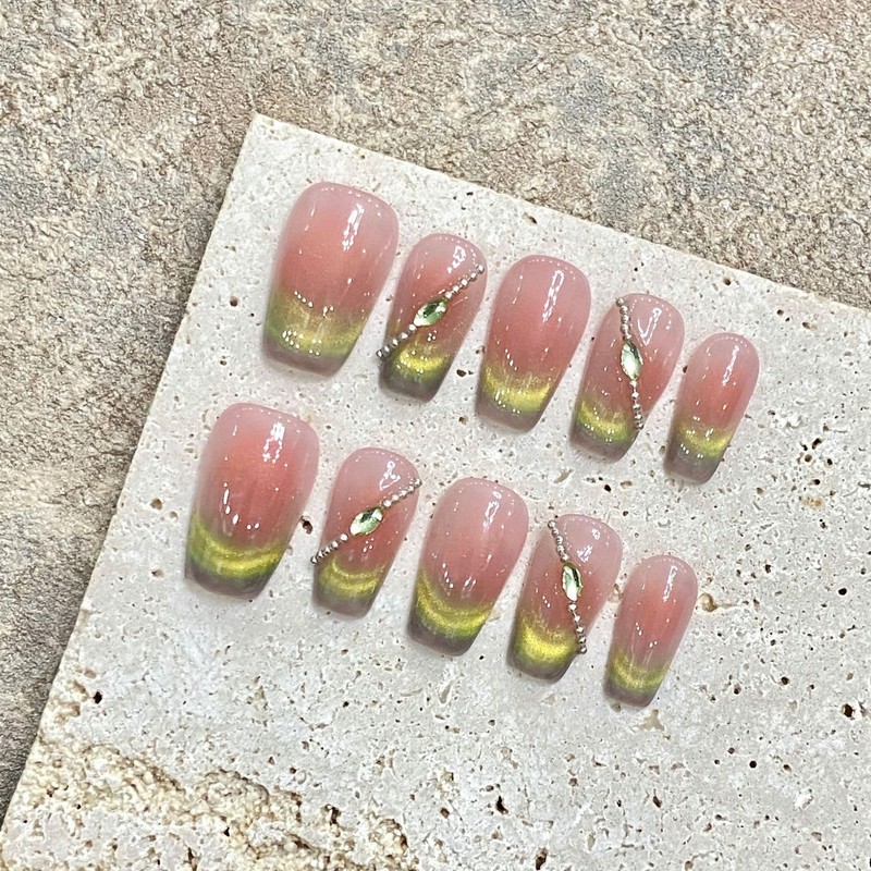 10 Pcs Handmade Nail Tips Grass Green Medium Coffin Nail Popular