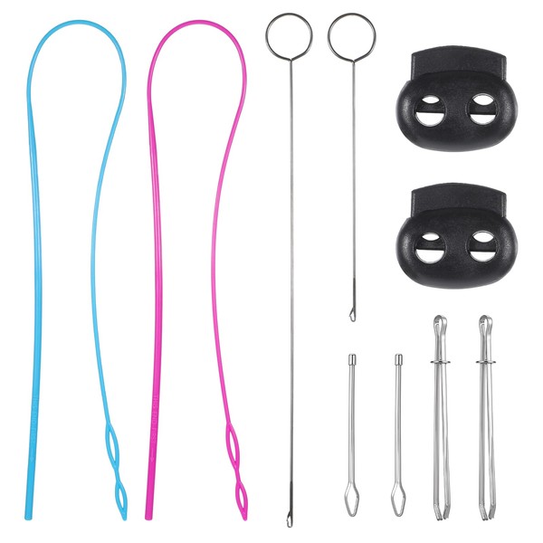 - 【Package Contents】You will receive 2 pieces of plastic flexible drawstring threaders, 2 pieces of metal drawstring threaders, 2 pairs of metal tweezers, 2 pieces of cord locks, and 2 pieces of loop turner hooks with latch, 10 pieces in total