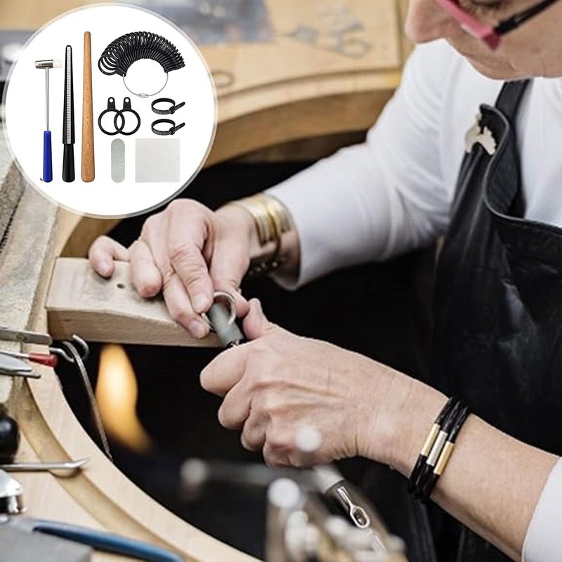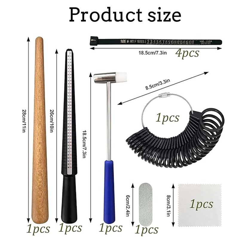 - PORTABLE DESIGN: Compact set with lightweight tools - wooden mandrel measures 28cm, metal sizer 26cm, and hammer 18.5cm for easy storage and transport