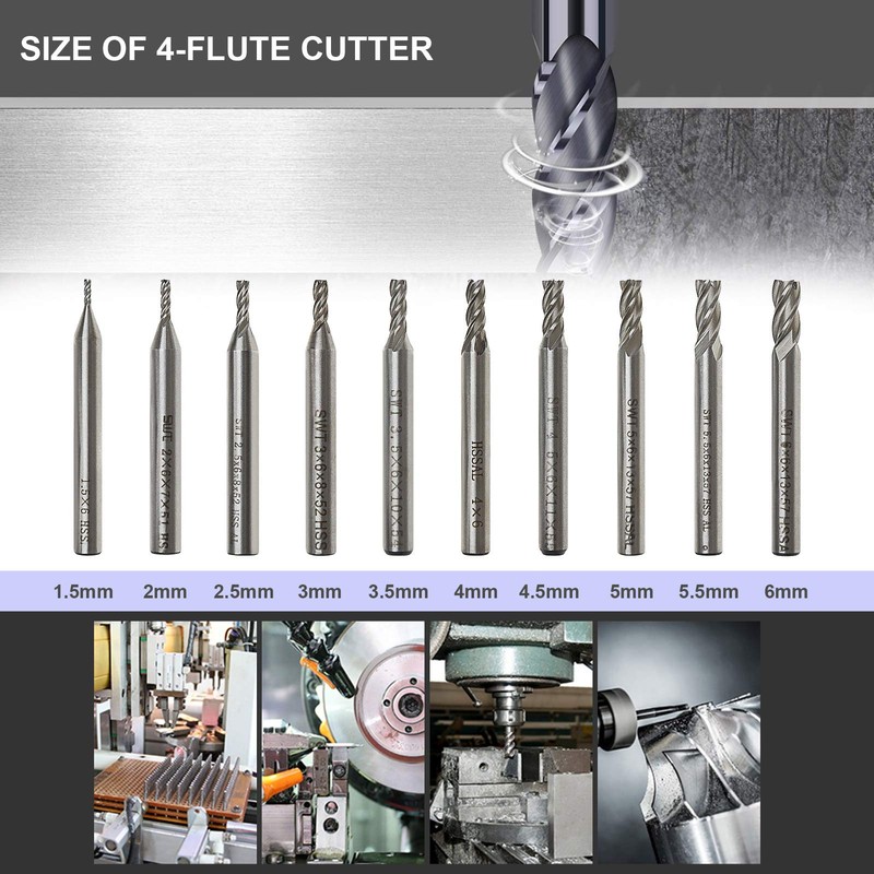 10 Pcs Straight Shank HSS 4 Flute End Mill 1.5 2 2.5 3 3.5 4 4.5 5.5 6mm Diameter 6mm Handle for Wood Carbon Steel Alloy Steel