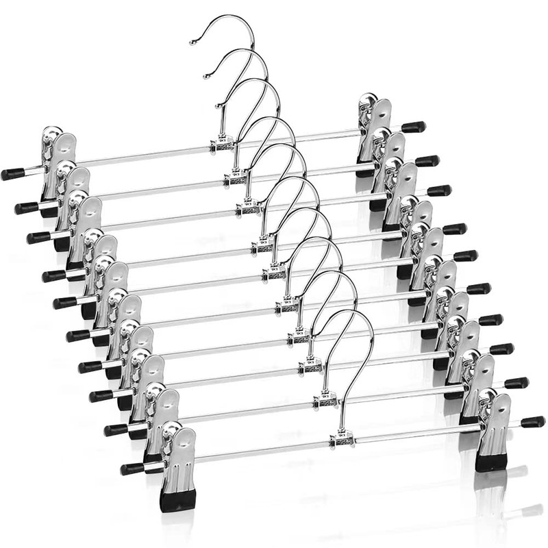 10 Perchas para Pantalones con Clip - Antideslizantes con Clips Ajustables Que no Deja Marcas Perchas de de Metal Resistente Pantalones con Gancho Giratorio Perchas para Faldas y Jeans