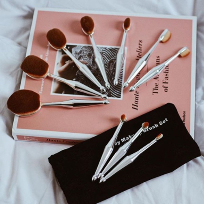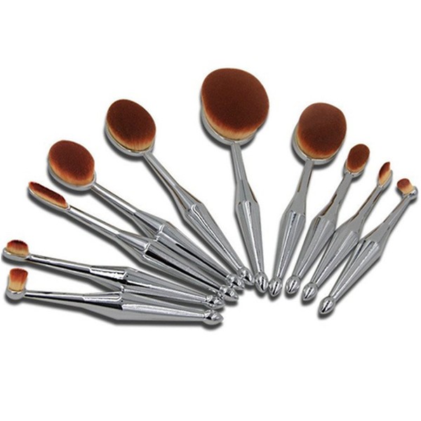 10 Piece Metallic Silver Oval Brush Set