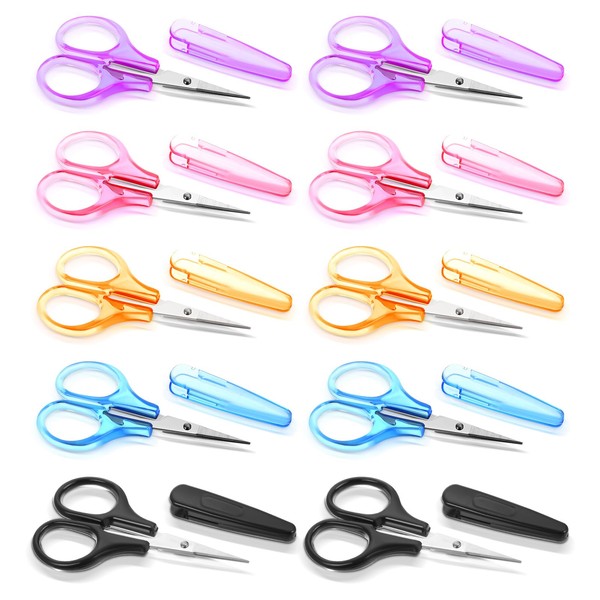 10 Piece Small Scissors Set, Mini All-Purpose Scissors, Stainless Steel Craft Scissors, Precise Straight Scissors with Protective Cover, Craft Scissors for Sewing Paper Cutting Scrapbooking (5 Colours