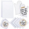 10 Pieces Blank Sublimation Oven Mitts Set Include 2 Sublimation Heat Resistant Oven Gloves 2 Blank Sublimation Hot Pads Pot Holders 2 Towels and 4 Dish Towels for Kitchen Cooking (White)