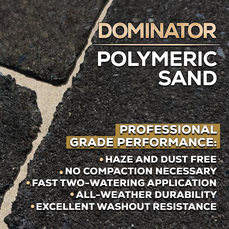- EASY INSTALLATION: Made with fine sand and a cement-free formula, DOMINATOR Polymeric Sand easily sweeps into joints and rinses easily, dramatically cutting your installation time and labor efforts. (Note: This product is not a replacement for grout, mortar, and paver edging.)