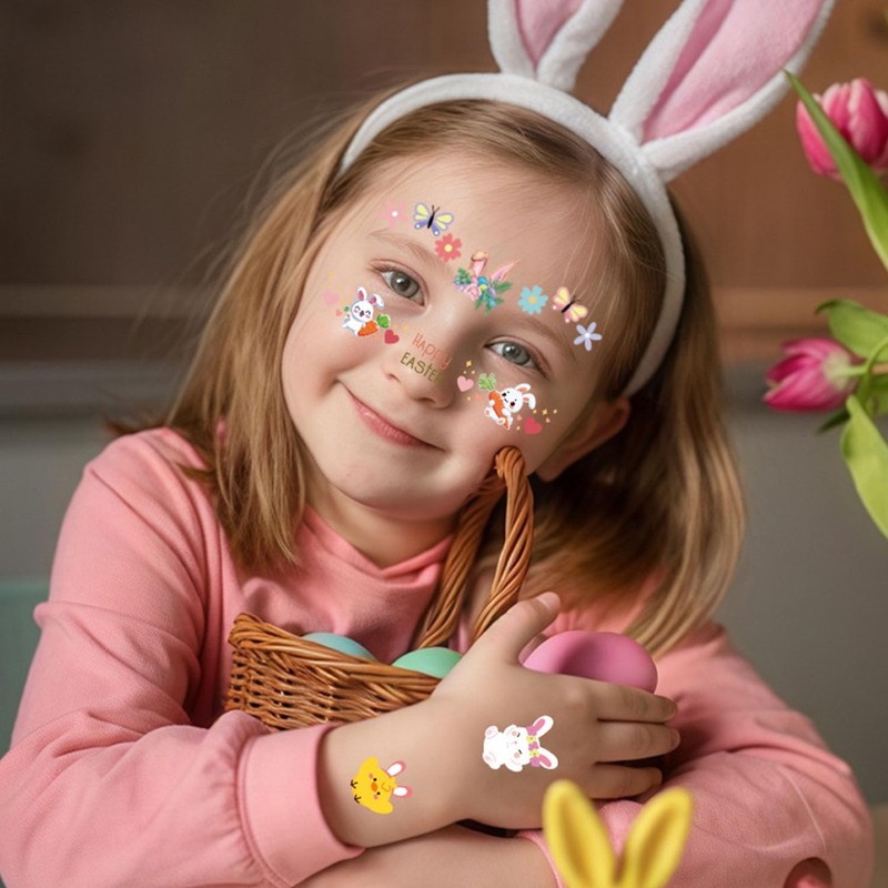 - Unique Design: The Easter Tattoos come with vivid Egg and Bunny design, lovely and delicate, and it includes various body tattoos, together with the bright green color, vivid and attractive will make you stand out from the crowd and giEaster Temporary Face Tattoos Egg and Bunny Fake Tattoos Stickers for Kids Girls Boys Easter Day Birthday Party Decorationsve you a good festival experience.