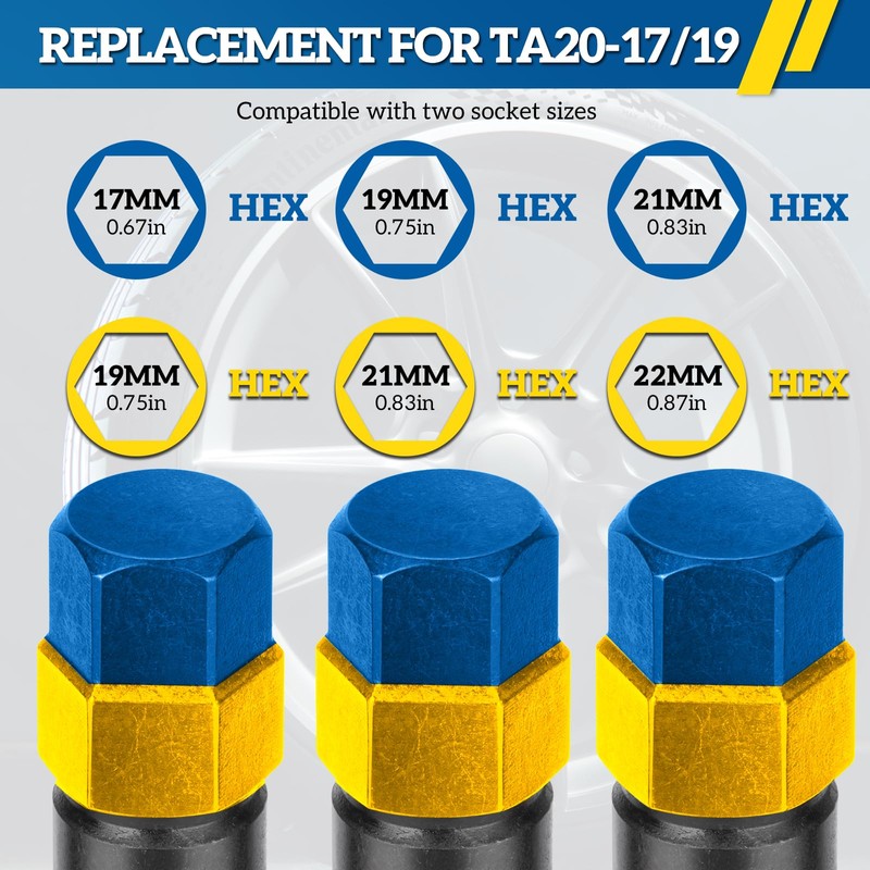 Thinkpro 10 Spline Lug Nut Key Replacement is a meticulously crafted solution designed to meet the demands of both professional mechanics and DIY enthusiasts. Engineered for the TA20-17/19,TA20-19/21,TA23-21/22 specifications and seamlessly compatible with Bimecc 10 point lug nut key , this 10 spline lock key is a testament to precision and durability. Forged from high-quality CR-MO steel,this wheel lock 10 spline stands up to the rigors of use with a promise of long-lasting strength and corrosion resistance. 10 Splined Nut Sockets feature a dual drive design to simplify tool changes, allowing you to choose between 17mm 19mm 21mm 22mm hex drives to suit your existing tools.This feature, coupled with laser-etched size markings, ensures that identification and use are swift and hassle-free. The thoughtful addition of a clear plastic case not only provides organized storage but also enhances portability, making this 10 spline lock socket 21mm as convenient as it is robust. However, it is important to note that this lug nut key is specialized for TA20 17-19mm and not compatible with all wheel nuts, particularly those with long spikes. Verifying compatibility with your vehicle before purchase is crucial to ensure that you have the right tool for the job. By choosing Thinkpro, you're investing in more than just a tire maintenance tool; you're equipping yourself with a reliable assistant for those unexpected moments when vehicle issues arise. Whether it's a flat tire on a long trip or a routine wheel check, Thinkpro's 10 star lug nut socket is there to provide the support you need to get back on the road swiftly and safely. This isn't merely a purchase; it's a commitment to a worry-free driving experience. Embrace the peace of mind that comes with being prepared for whatever the road may throw at you. Don't delay—elevate your toolkit with Thinkpro's 10 point wheel lock key Replacement and drive with confidence.
