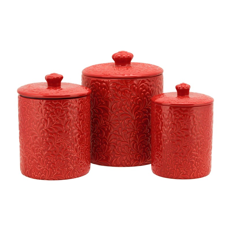 10 Strawberry Street Kitchen Canister Set, 3 Piece, Fleur Red